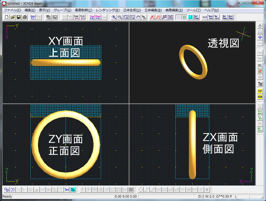 インストール後起動するとこの画面が表示されます。 何もない4面図の画面